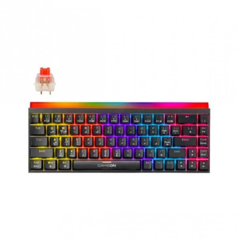 تصميم ميكانيكي مدمج بنسبة 60%: تصميم أنيق بـ 68 مفتاحاً يوفر مساحة كبيرة على المكتب مع الحفاظ على وظائف الألعاب الكاملة؛ مثالي للتنسيقات البسيطة (Minimalist) ذات الأداء العالي. تخصيص برمجي متقدم: يمنحك برنامج التشغيل (Driver) الخاص بـ GAMEON تحكماً كاملاً: تخصيص إضاءة RGB لكل مفتاح على حدة، إنشاء الماكرو (Macro)، إعادة تعيين وظائف المفاتيح، وتخزين ملفات تعريف متعددة. دقة مفاتيح Red Switch السلسة: مفاتيح ميكانيكية حمراء خطية (Linear) توفر استجابة سريعة جداً ونقرات حريرية. قوة الضغط: 60 جرام ± 10 جرام. مسافة الانتقال: 4.0 ± 0.5 ملم. العمر الافتراضي: مصنفة لـ 20 مليون ضغطة. تأثيرات إضاءة RGB ديناميكية: تتضمن 11 وضعاً لإضاءة منطقة المفاتيح و11 وضعاً علوياً لخلق تشكيلات ألوان لا نهائية، مع إمكانية تعديل السطوع والسرعة لكل مفتاح. خاصية Anti-Ghosting كاملة و12 اختصار وسائط: تنفيذ الأوامر المعقدة بدقة تامة بفضل تقنية N-key rollover، بالإضافة إلى اختصارات FN للوصول السريع إلى الموسيقى، مستوى الصوت، والوسائط المتعددة. هيكل متين واتصال Type-C: إطار معزز بمحاور ملحومة لضمان الثبات، مع كابل Type-C قابل للفصل لسهولة التنقل والاعتمادية الطويلة الأمد.
