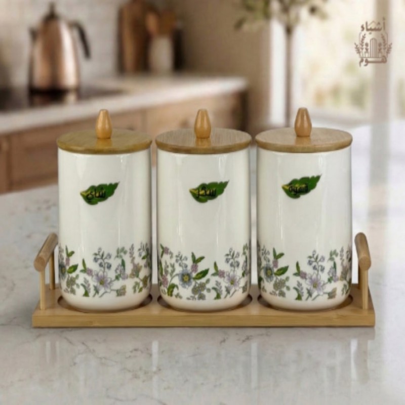 طقم برطمانات "شاي، سكر، قهوة" ثلاثي بنقش الورد الملكي Elegant Rose-Patterned Tea, Sugar &a IQD 25000.0 |