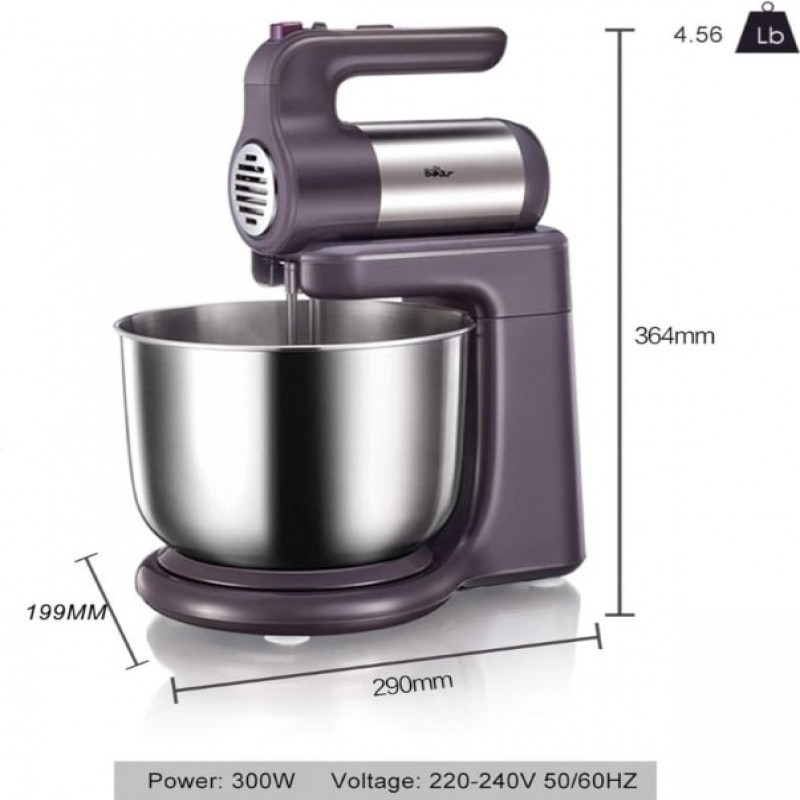 خلاط ستاند كهربائي بير سعة 3 لتر – وعاء ستانلس ستيل وملحقات كاملة Electric Stand Mixer – 300W Stainl
